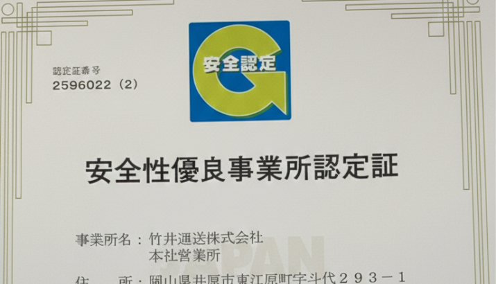 竹井運送では、岡山県井原市から関西エリアへの運送業務と地場の配送業務を行っています。